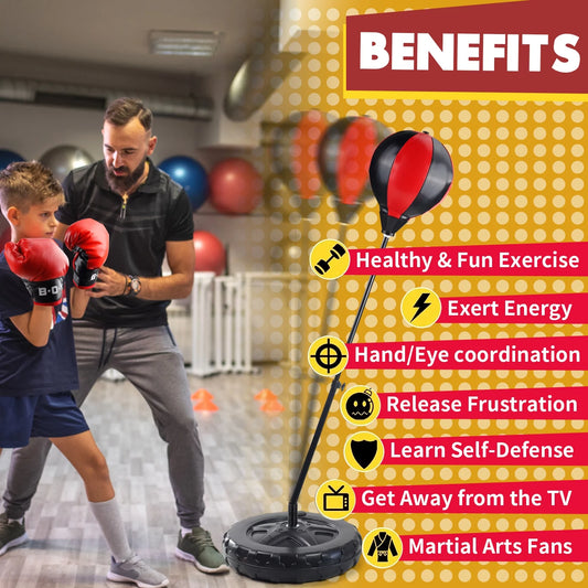 Freestanding Reflex Punching Bag - Adjustable Height for Kids & Adults